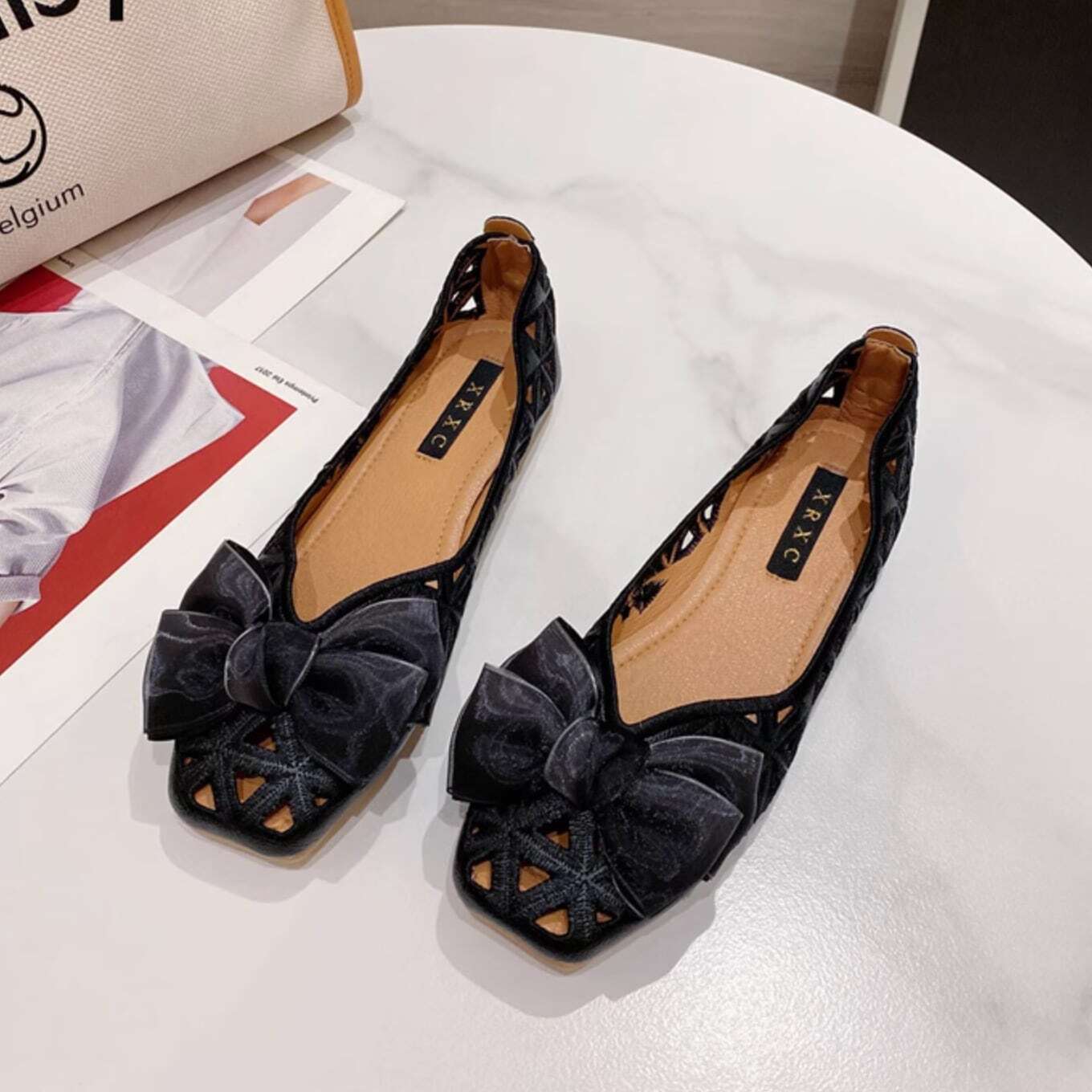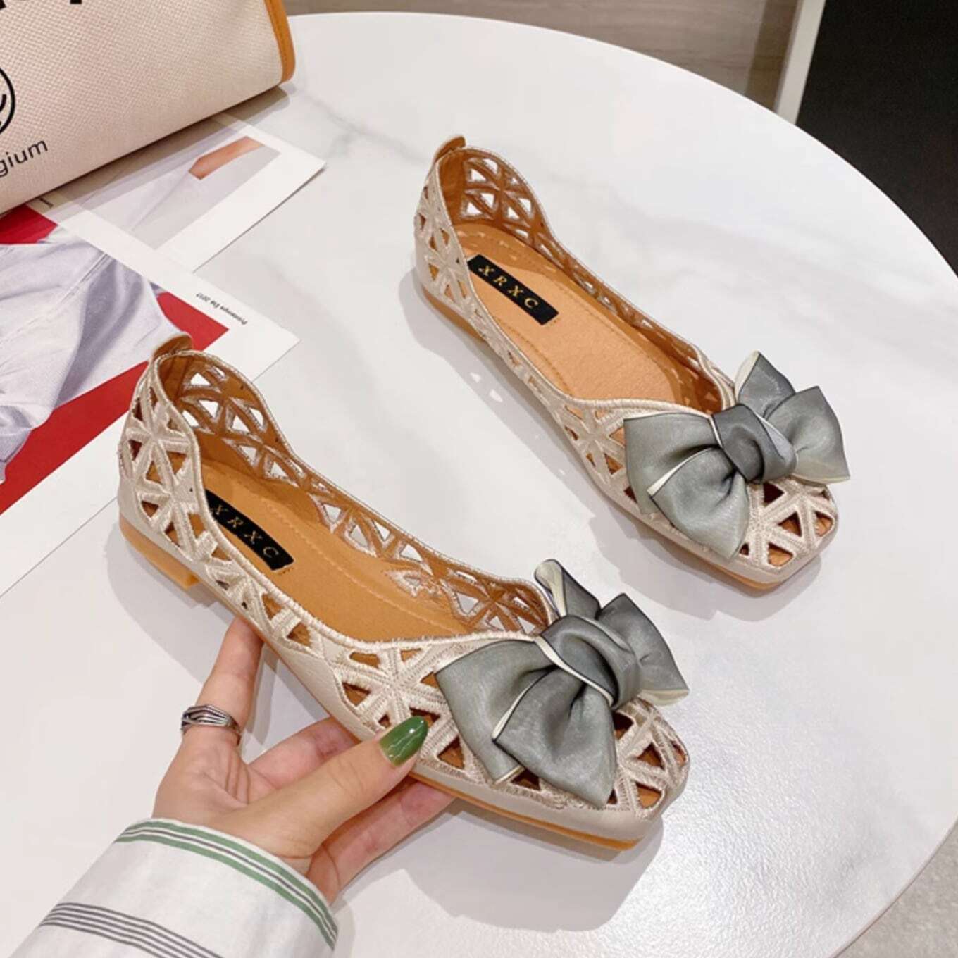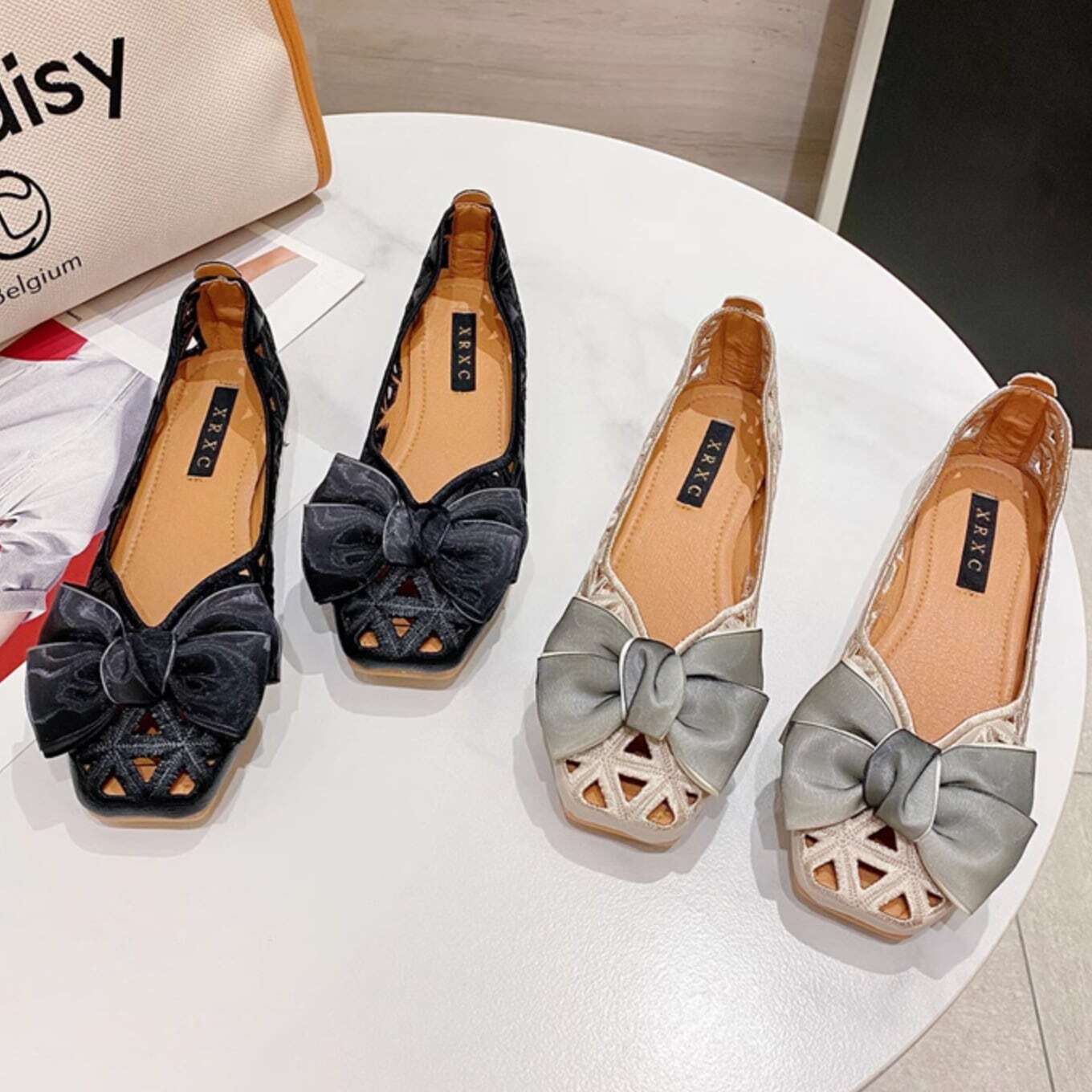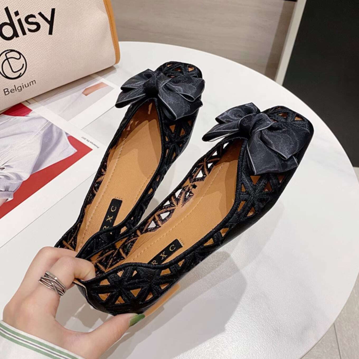 繊細なカットワークデザインが軽やかな印象を与える、春夏にぴったりの一足。