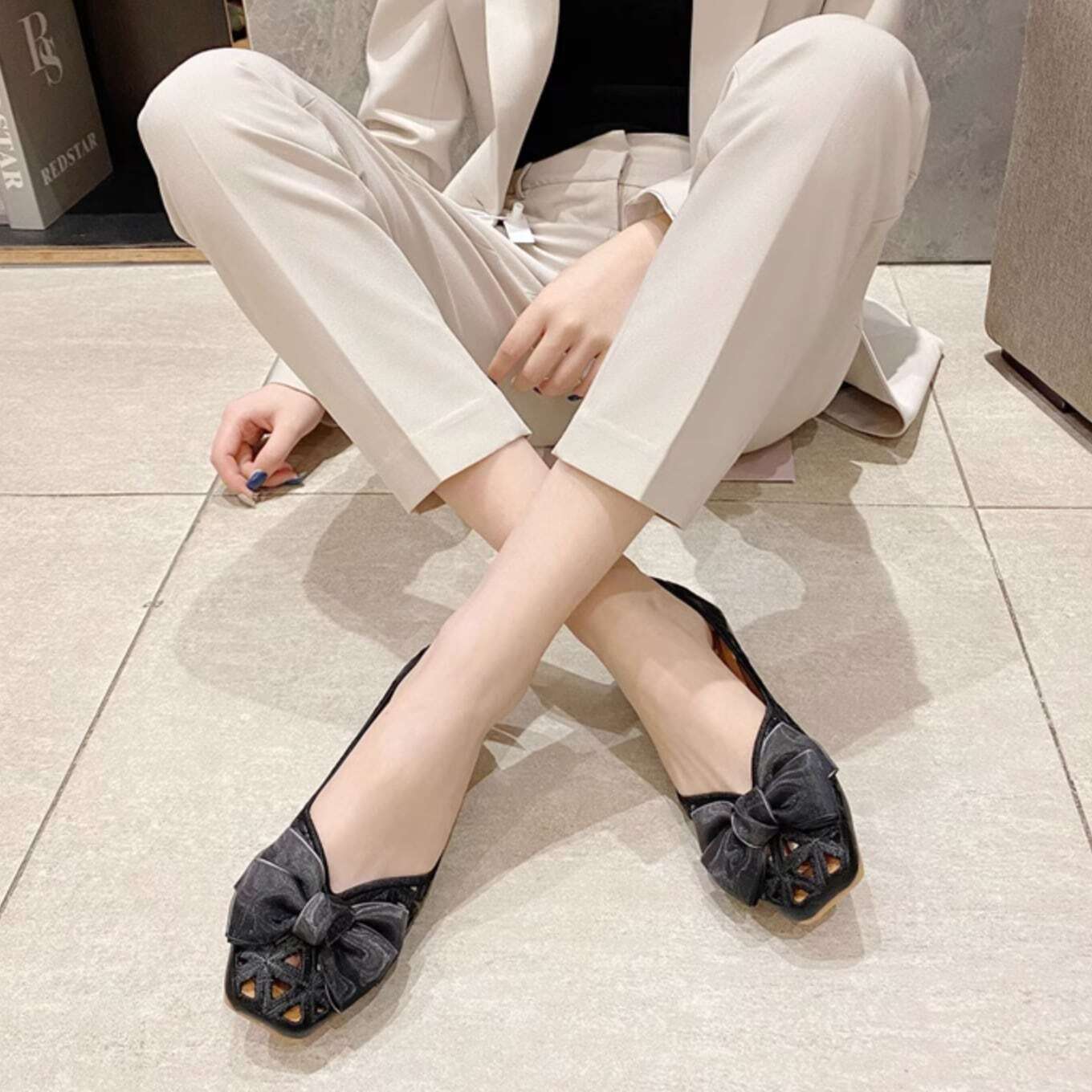スタイリッシュなスクエアトゥが足元をすっきりと見せてくれるのも嬉しいポイント。