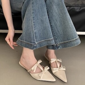 スッと履けるミュールタイプは、忙しい朝やちょっとした外出に便利。
