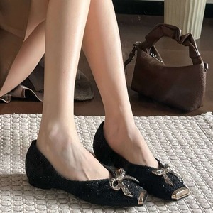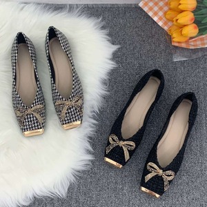 ツイードライクリボンフラットパンプス F009