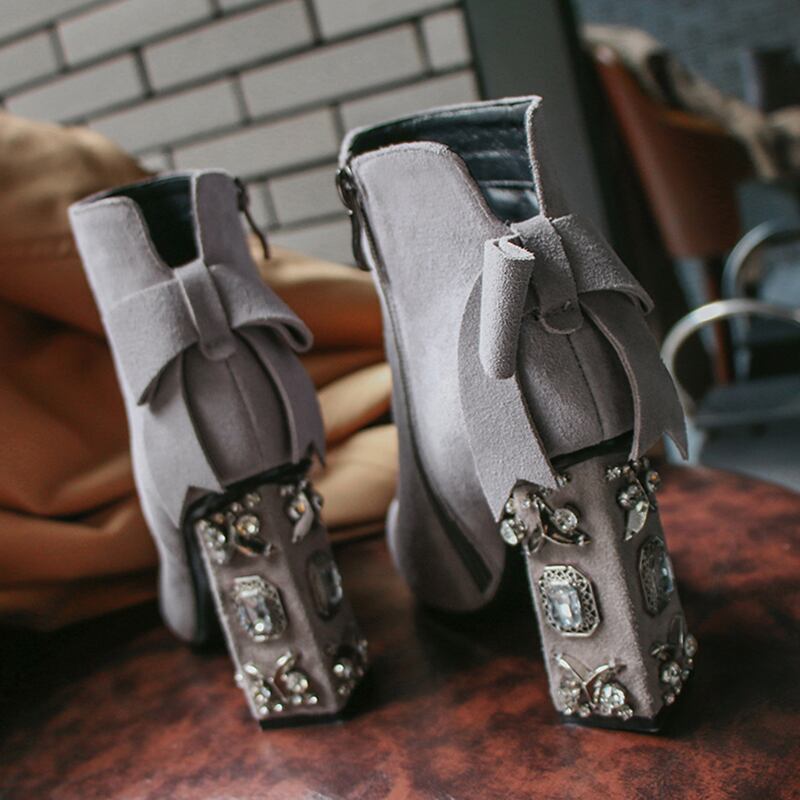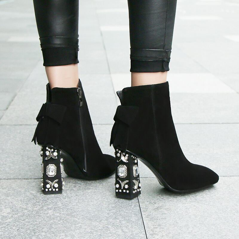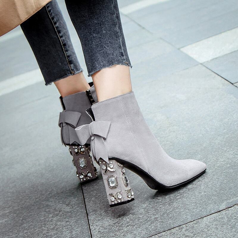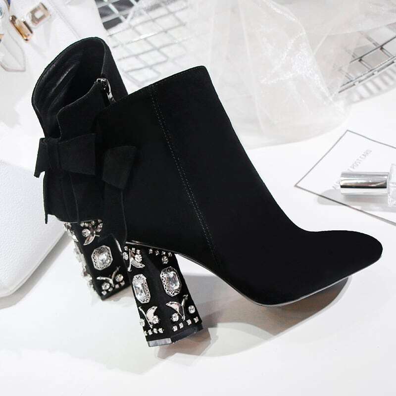 ジュエリーヒールショートブーツ F018