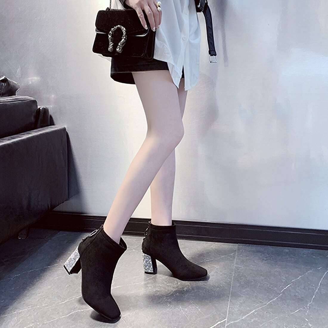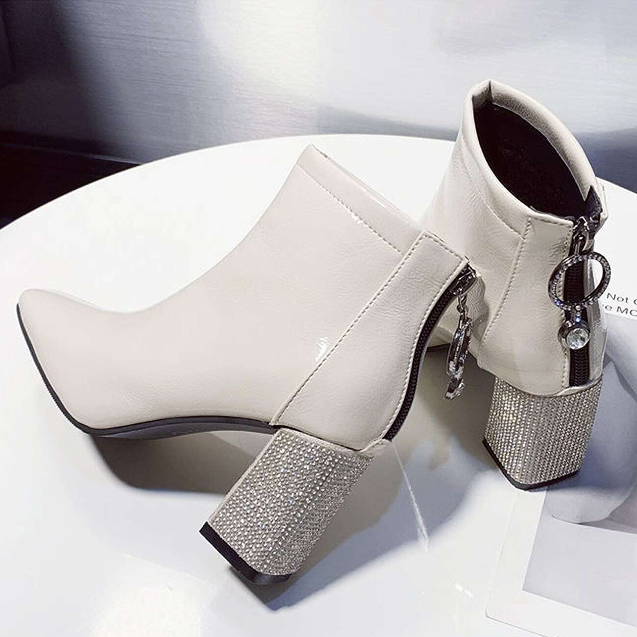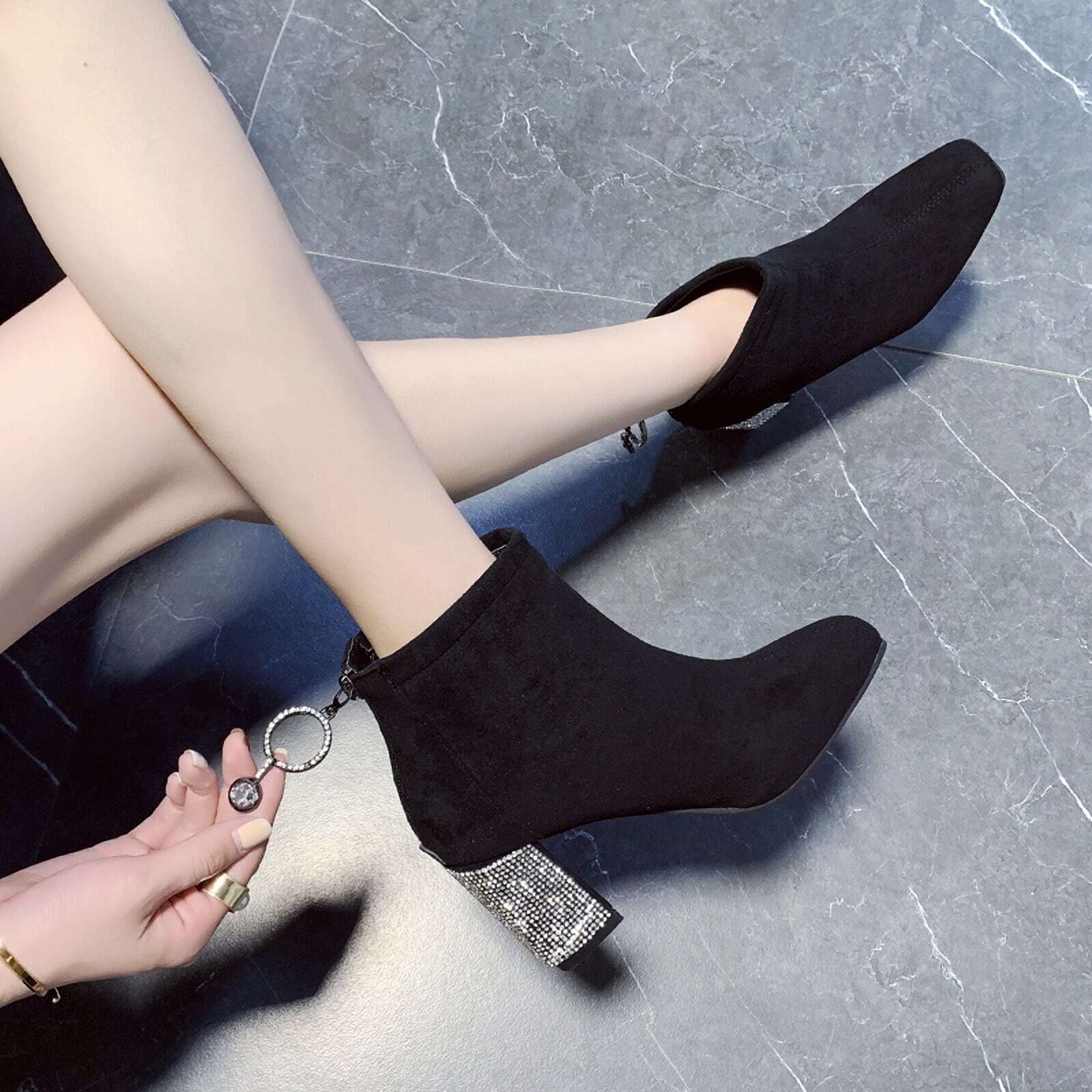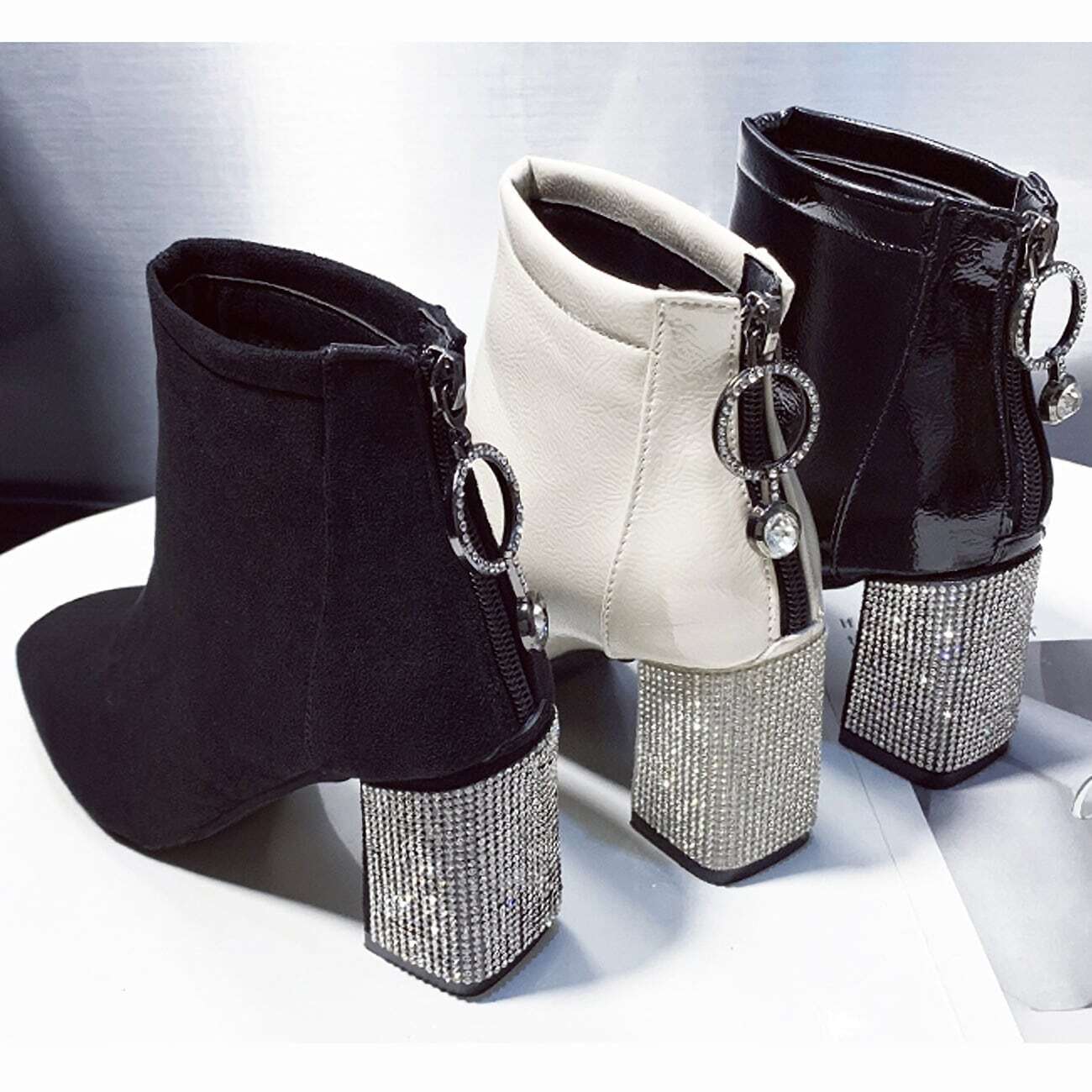 ラインストーンスクエアトゥブーツ F033