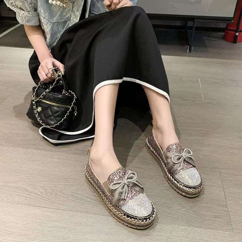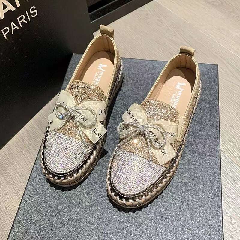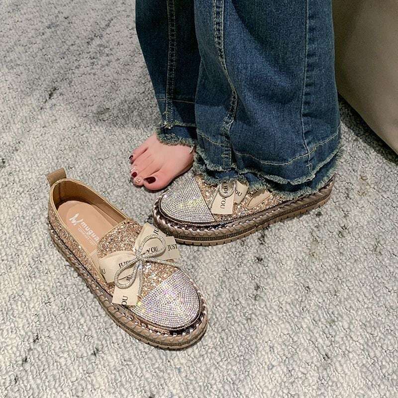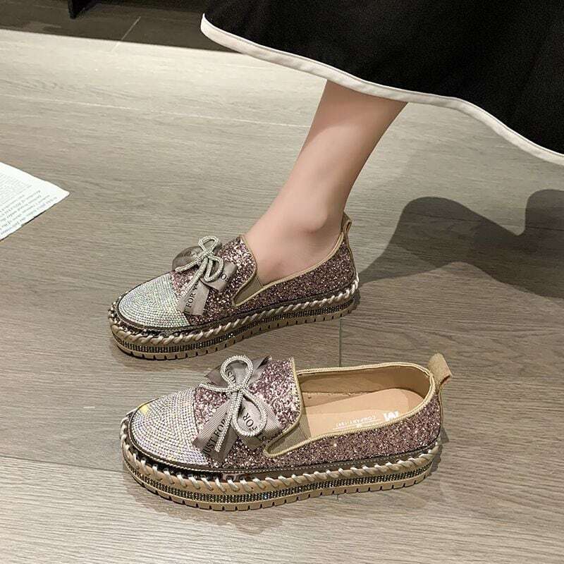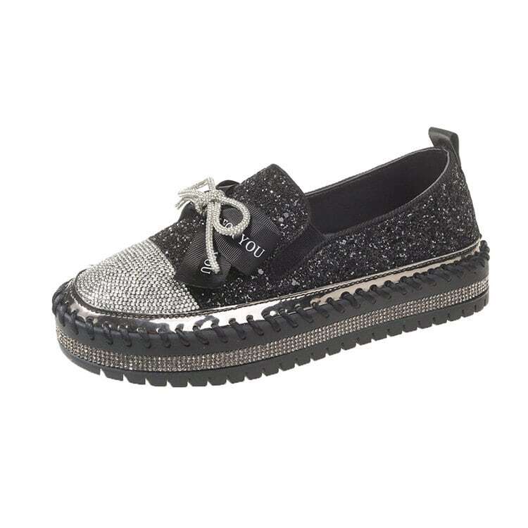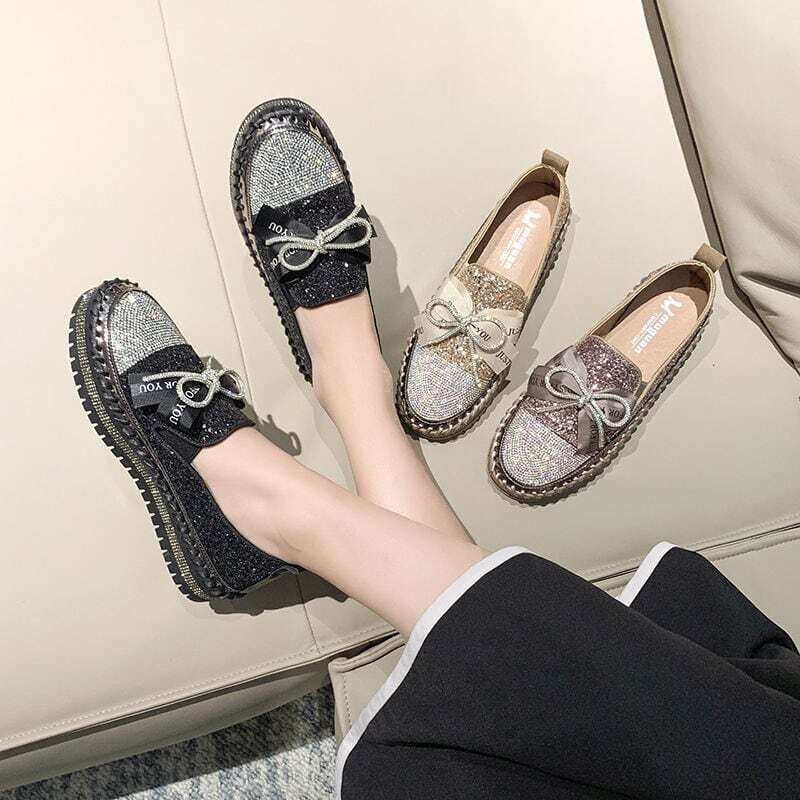 きらめくグリッターと可愛らしいリボンが女性らしさを演出する、おしゃれなシューズ✧
