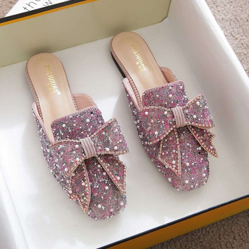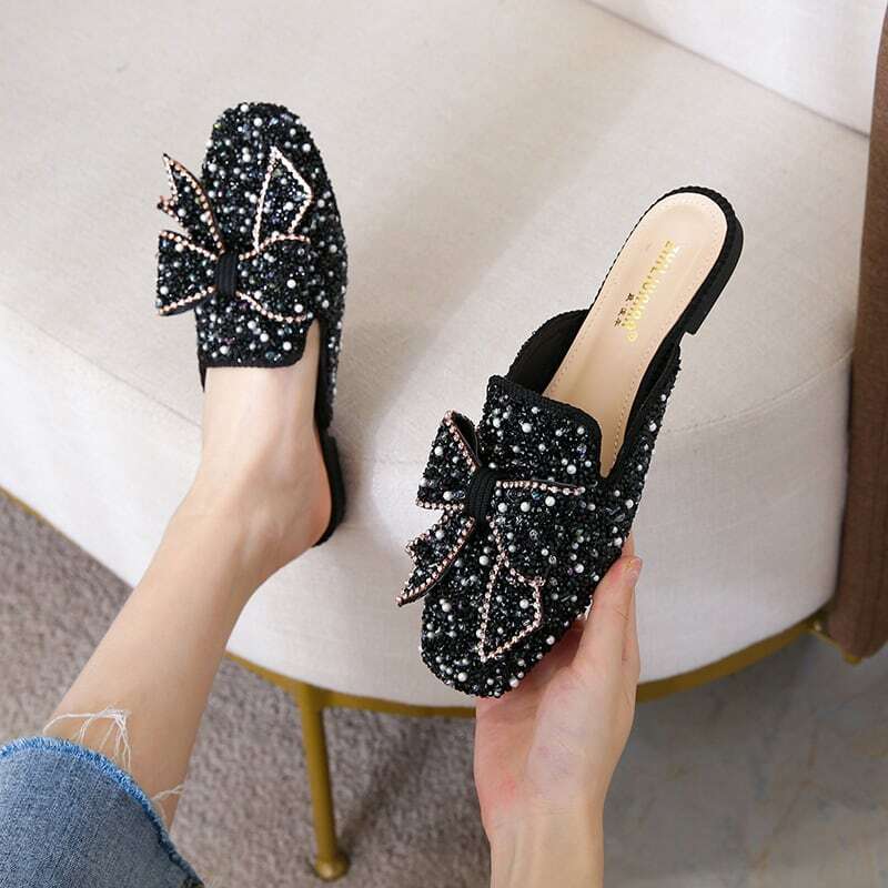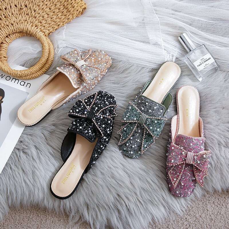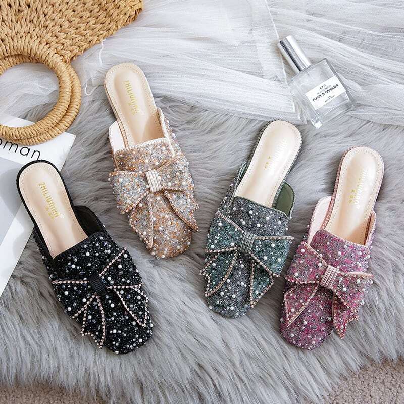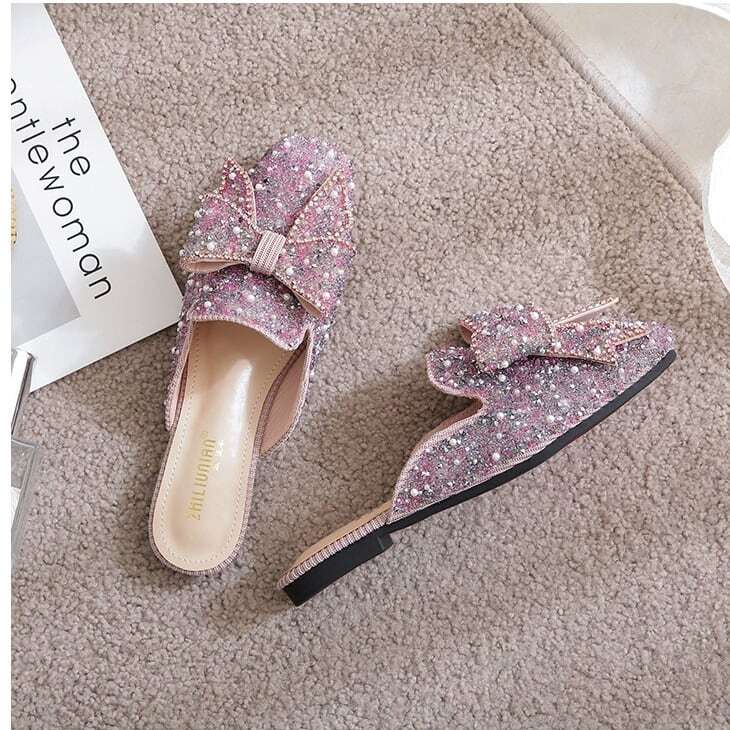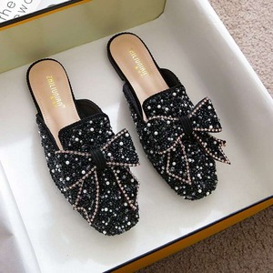 ビーズやパールをふんだんに敷き詰めたミュールに、大振りのリボンがアクセントになっています✧