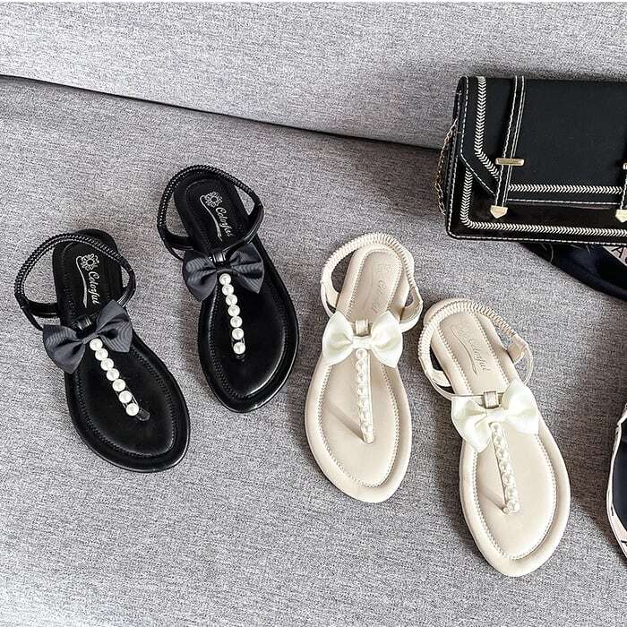 パールストラップの高級感とリボンのフェミニンさの相性が◎