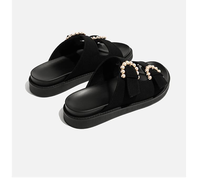 煌めくパールがアクセントのサンダルならではの開放感と女性らしいディテールが融合した、上品で華やかなアイテムです。