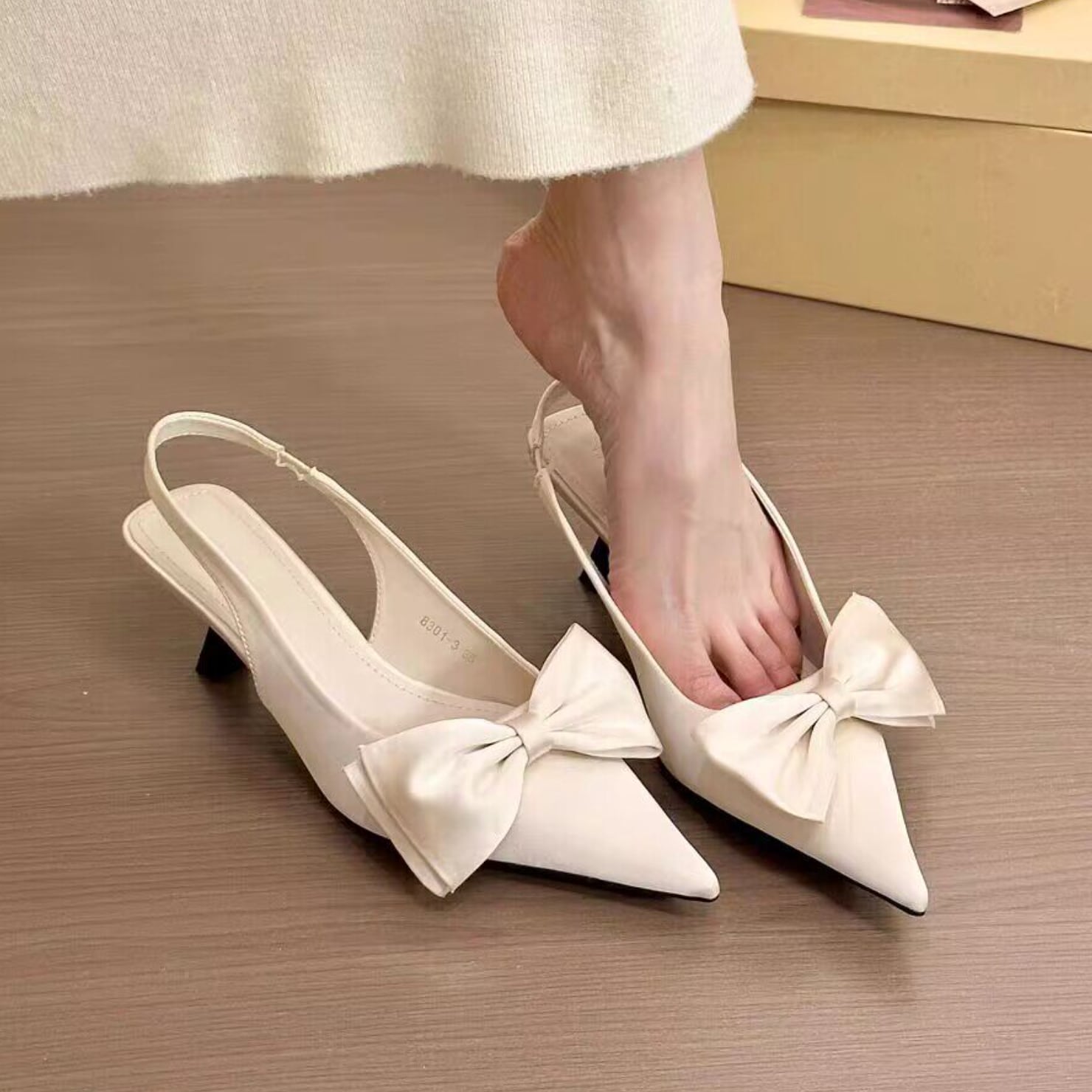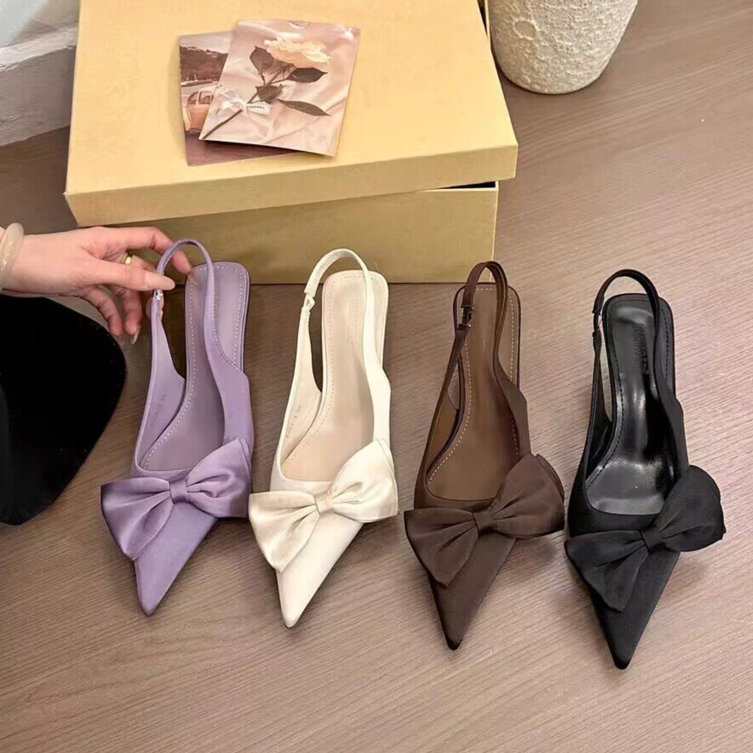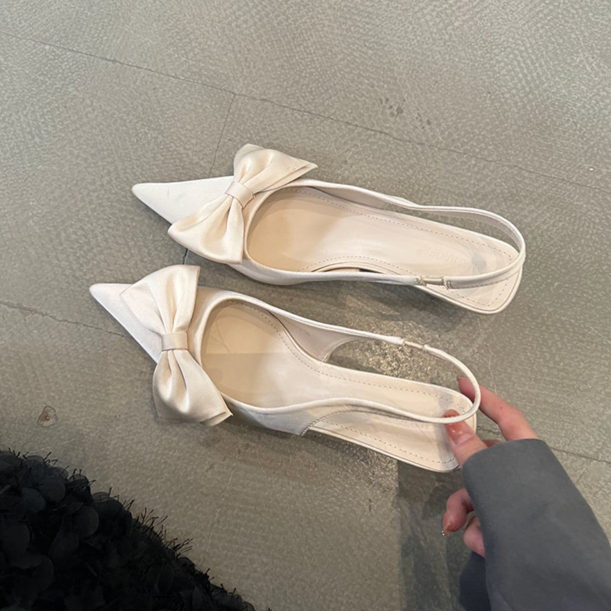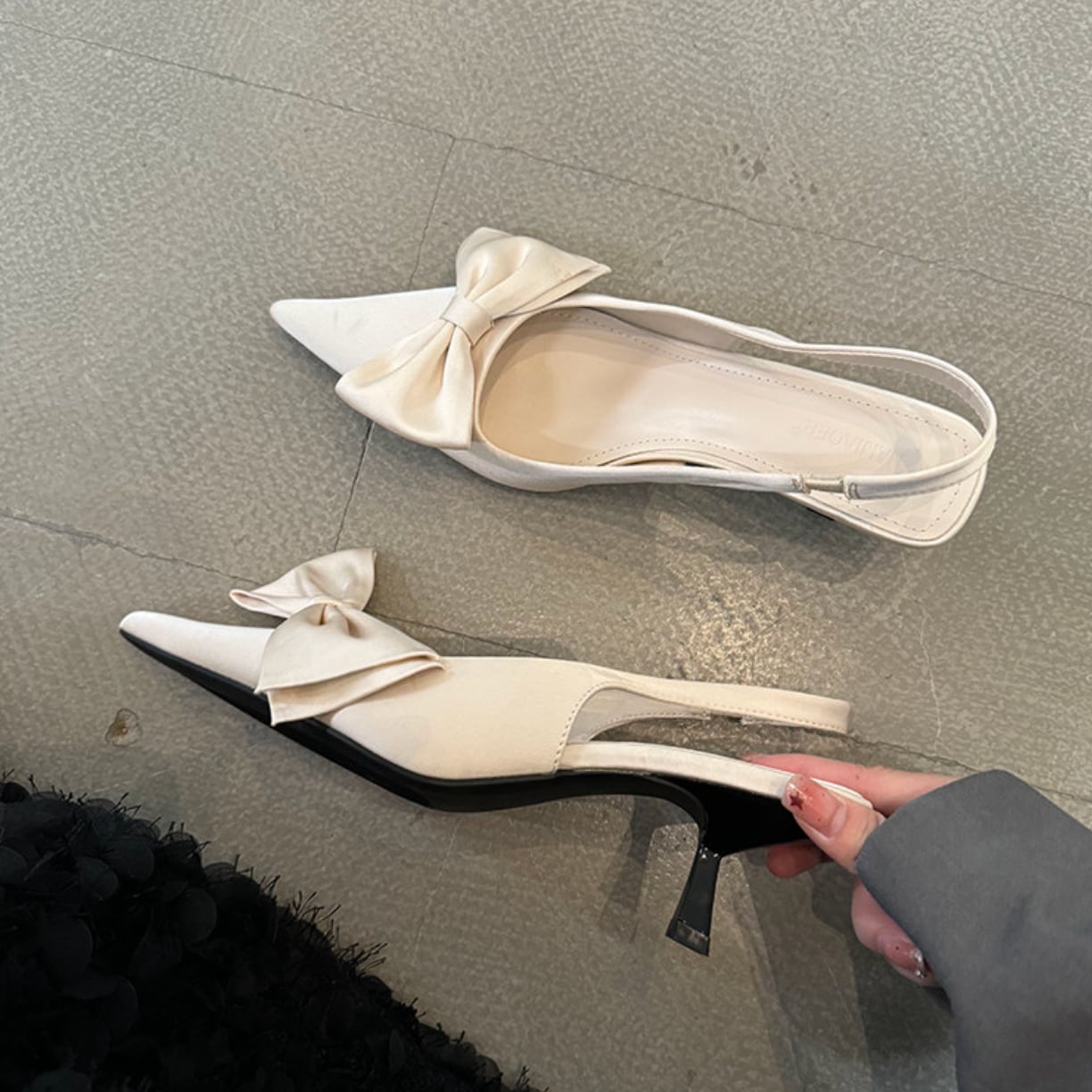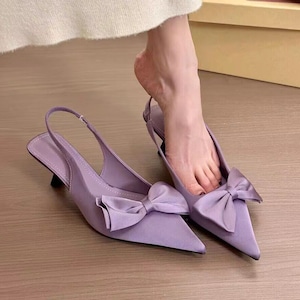リボンモチーフスリングバックパンプス F275