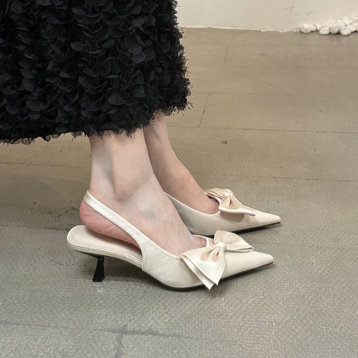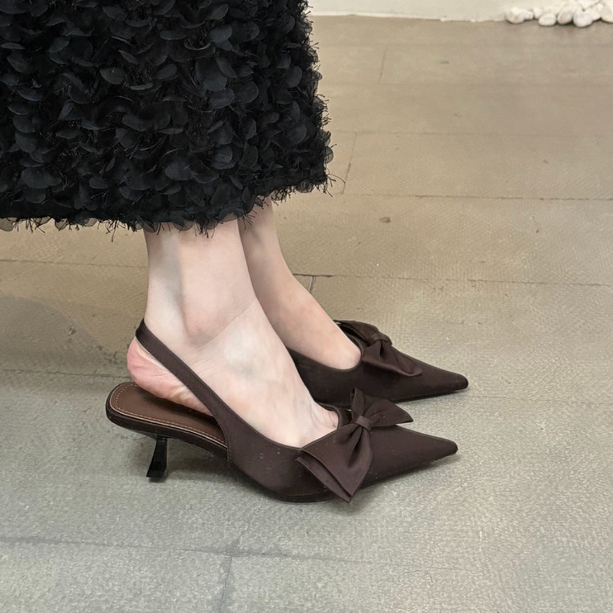 シャープなシルエットと程よいヒールで、きれいめからフェミニンな装いまで幅広いスタイリングに品よくなじみます。