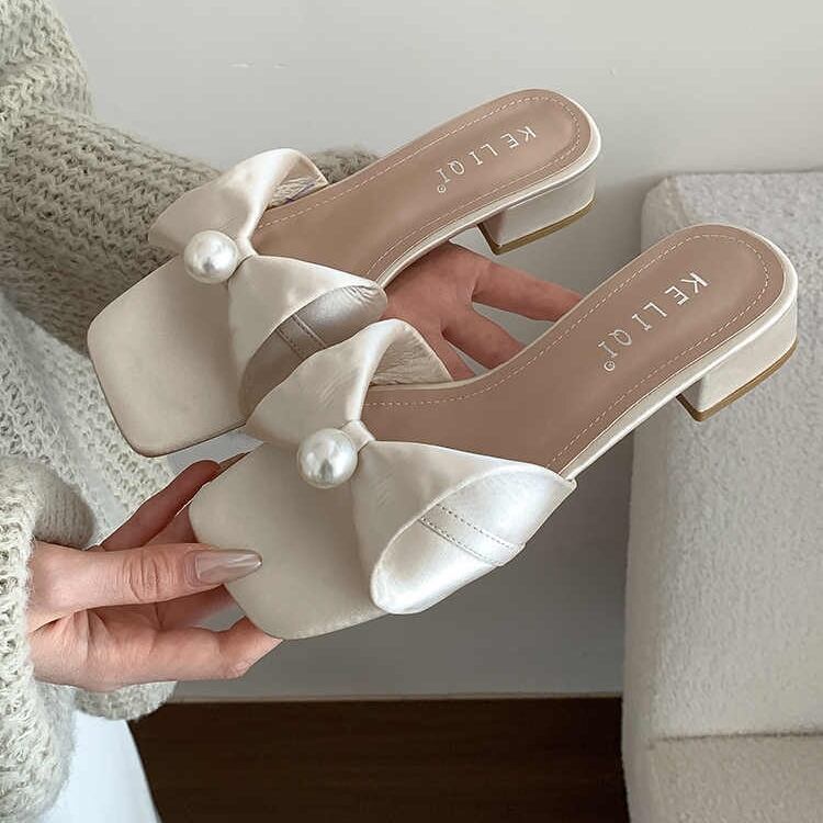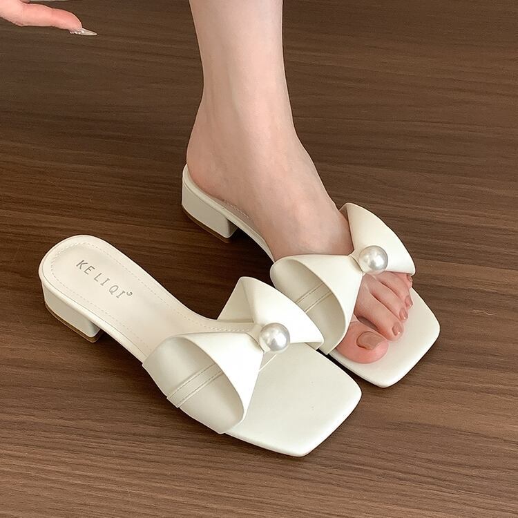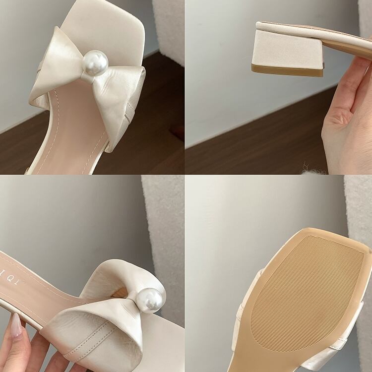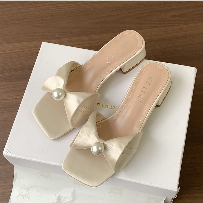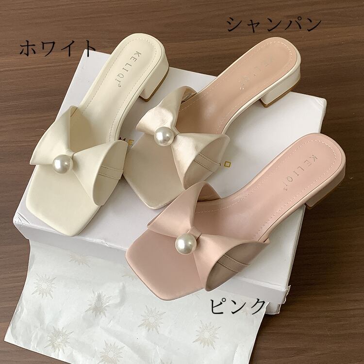 センターパールリボンサンダル F061