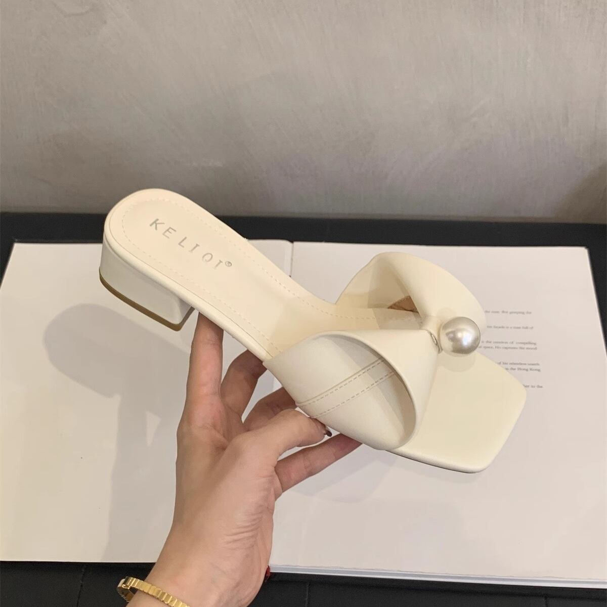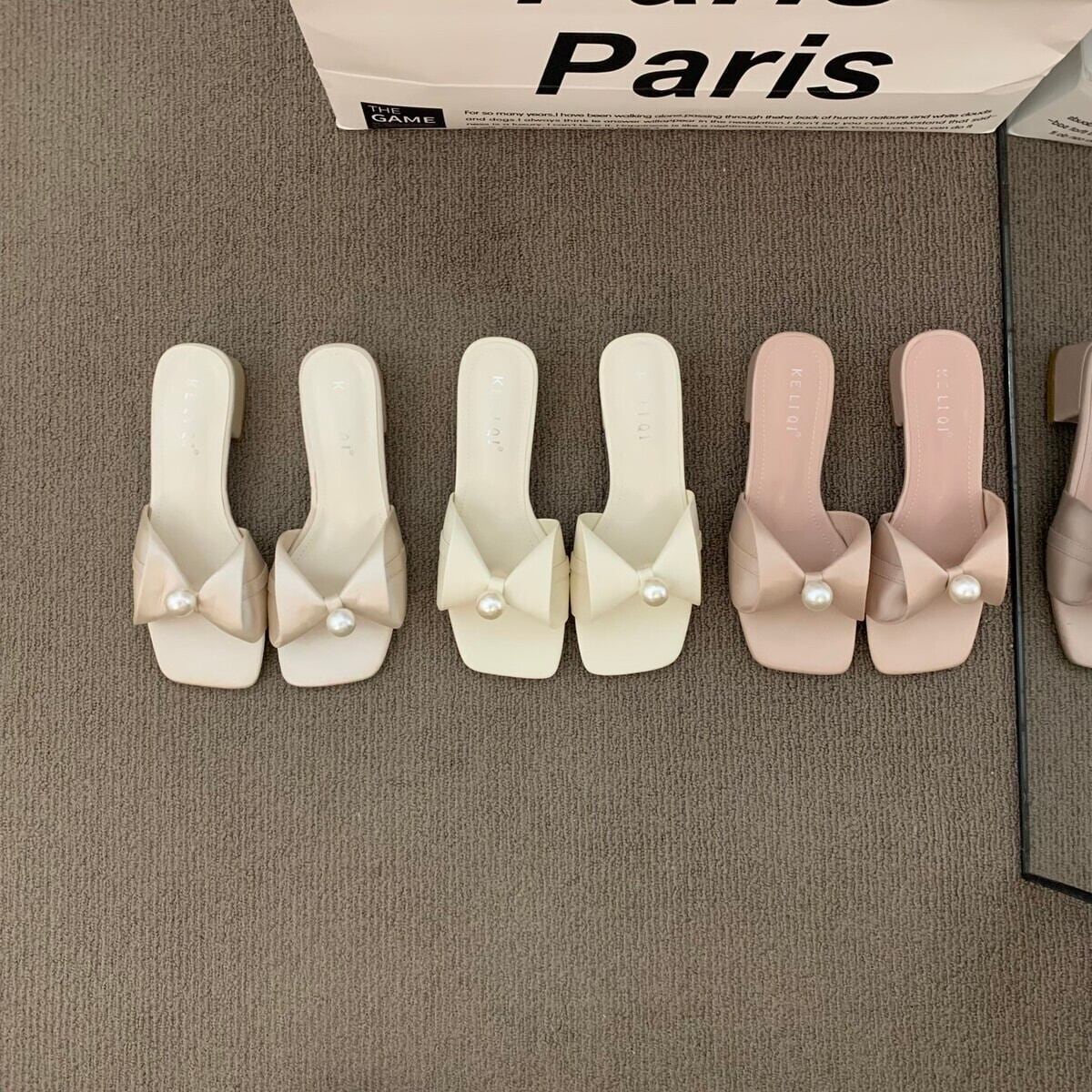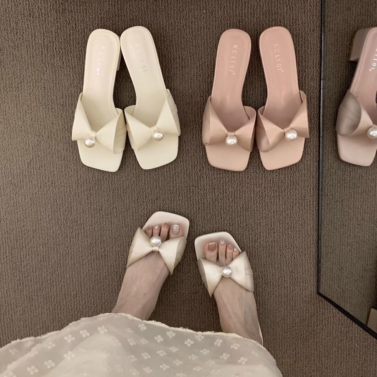 センターパールリボンサンダル F061